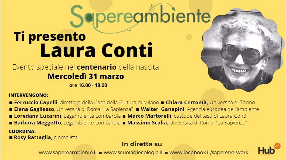 On the 31st of March, 4-6 pm, I am taking part in the event in memory of Laura Conti, one of the most important italian ecologists (whose work is at the base of the EU Seveso Directive). The event (in italian) is organised by the online review SapereAmbiente and everybody is invited to join at the this link.