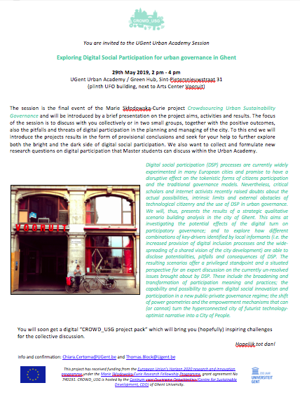 UGent Urban Academy, 29th of May 2019 (Dowload here the flyer_of CROWD_USG final seminar)