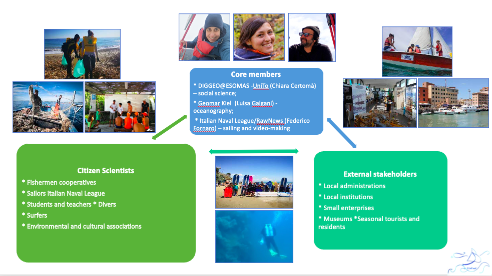 SeaPaCS project, supported by the European funds of the IMPETUS4CS project is coordinated by Chiara Certomà (DIGGEO@ESOMAS laboratory, University of Turin) and co-coordinaed by Federico Fornaro (Italian Naval League Anzio) and Luisa Galgani (Marine Biochemistry Division of GEOMAR Helmholtz Centre for Ocean Research Kiel).